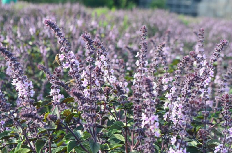 and it hums and buzzes all around us: in Paul Peteanus‘basil fields in Unterföhring near Munich. Since 2016, the agronomist has been growing the African basil