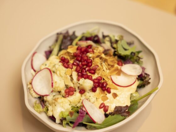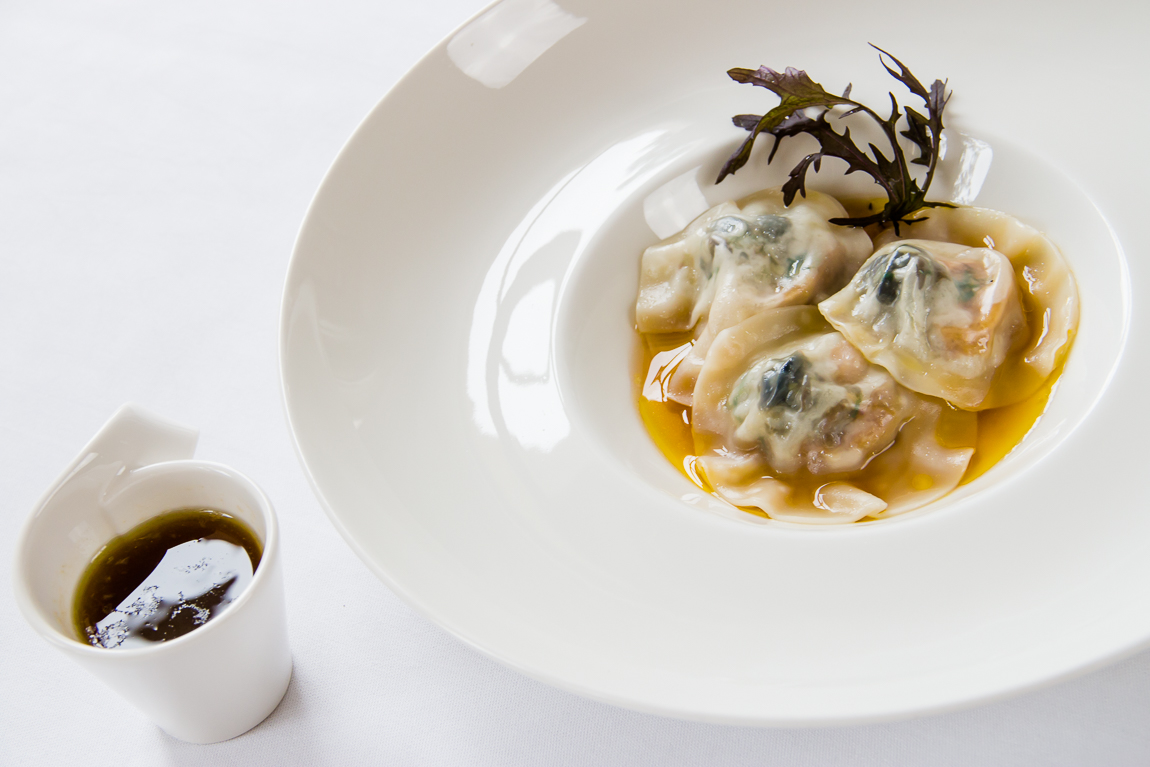 Die Speisekarte zählt detailliert alle 32 Produzenten auf. Der Lachs stammt von Jean- Marc Ledot aus Bayeux und die Salzwiesenlämmer wachsen bei Gérard Legruel auf, der auch Sterneköche in Paris beliefert und sich zusätzlich auf den Anbau alter Gemüsesorten spezialisiert hat. Wir probieren zarte Makrele begleitet von gegrilltem Spargel mit Artischockenchips und – eine Hommage an den Hanfanbau – mit Hanföl aromatisiert. Sowohl handwerklich als auch geschmacklich perfekt sind die Ravioli, hauchdünner Teig gefüllt mit Entenstopfleber und Schnecken, benetzt mit einer intensiven mit Ingwer verfeinerten superben Rindfleischconsommè – geniale Kombination! Die Ravioli sind das Highlight des Abends. Die Seezunge mit Erbsenbrei überzeugte hingegen nicht – fad, geschmacklos, totgegart. Das Rinderfilet mit Karottengitter obenauf ist in Konsistenz und Geschmack gut, leider durchgebraten, obwohl medium bestellt. Ravioli und Makrele zeigen, Robin und seine Crew können kochen, aber sind zu zögerlich und vorsichtig beim Würzen und manchmal unterlaufen handwerkliche Fehler. Der Abschluss versöhnte uns: In der Normandie, die Region der drei großen C’s, probieren wir Cidre, Calvados und Camembert. Der Käsewagen war mit auf den Punkt gereiften Käse gut bestückt, der Cidre süffig und der Calvados fein und herb.
