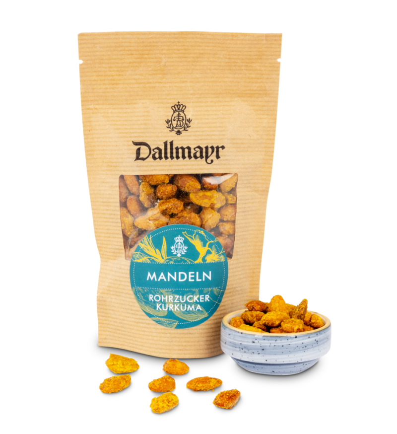 These almonds impressively demonstrate that the slightly earthy, spicy turmeric can also be combined with sweet flavors. Caramelized cane sugar, a hint of olive oil and subtle tart notes of turmeric surround the juicy almonds with an exciting aromatic coating.