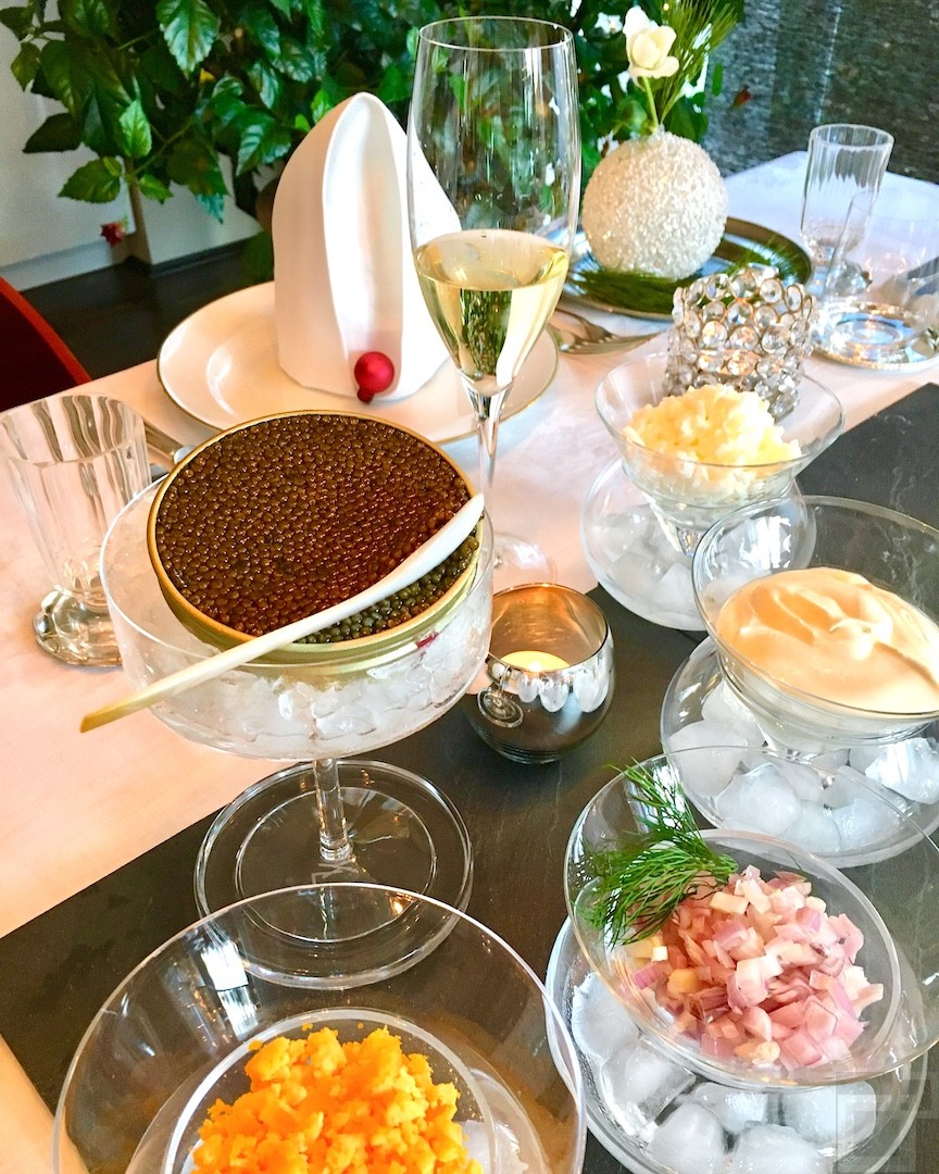 Eine frisch geöffnete Dose Kaviar lässt die Herzen vieler Foodies höher schlagen. Kopf an Kopf liegt das gräulich-schwarze Korn in der goldenen Schatulle und wartet darauf mit handgefertigten Perlmutt-Löffeln zum ersten Test auf den Handrücken zwischen Daumen und Zeigefinger gestrichen zu werden. Echte Kaviar-Kenner bestehen auf diesen „handfesten“ Test, weil ihrer Meinung nach nur so, die Qualität des Stör-Rogen beurteilt werden kann. Zuhause lieben wir Kaviar mit seinen klassischen Begleitern. Neben frischen Blinis, die es inzwischen in anständiger Qualität zu kaufen gibt, schlicht mit reiner Crème fraîche, fein gehackten Schalotten und getrennt gehacktem Eigelb, wie Eiweiß. Hervorragend schmeckt diese Kombination anstatt auf Blinis auch mit frisch gedämpften Kartoffeln. Ein Gericht, so einfach und doch zum Reinlegen gut!