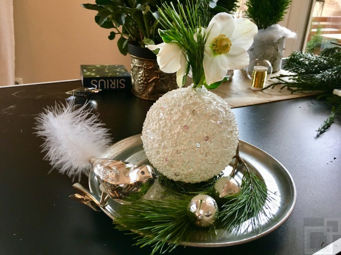In diesem Jahr haben wir uns für ein kleines Winter Wonderland auf dem Tisch entschieden. Mit weißen Perlen verzierte Weihnachtskugeln wurden zu kleinen Tisch-Vasen, die mit etwas Tannengrün und edlen Schneerosen kreative Eleganz auf die Tafel zaubern. Dazu funkelt das wunderschöne Tiffany-Besteck „Chrysanthemum“ im Art Noveau Style. Abgerundet wird unser winterlicher Zauberwald durch die verspielten Zoo-Messerbänkchen aus der Nile & Co Serie von Fürstenberg Porzellan.