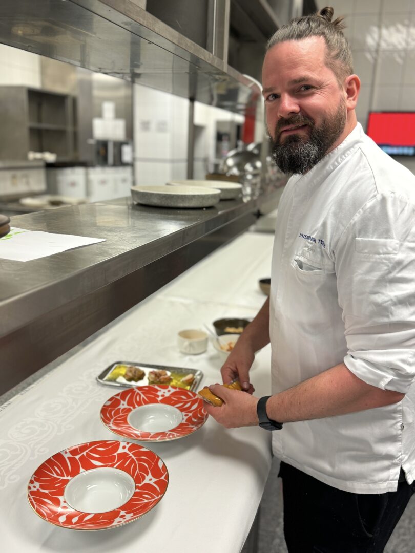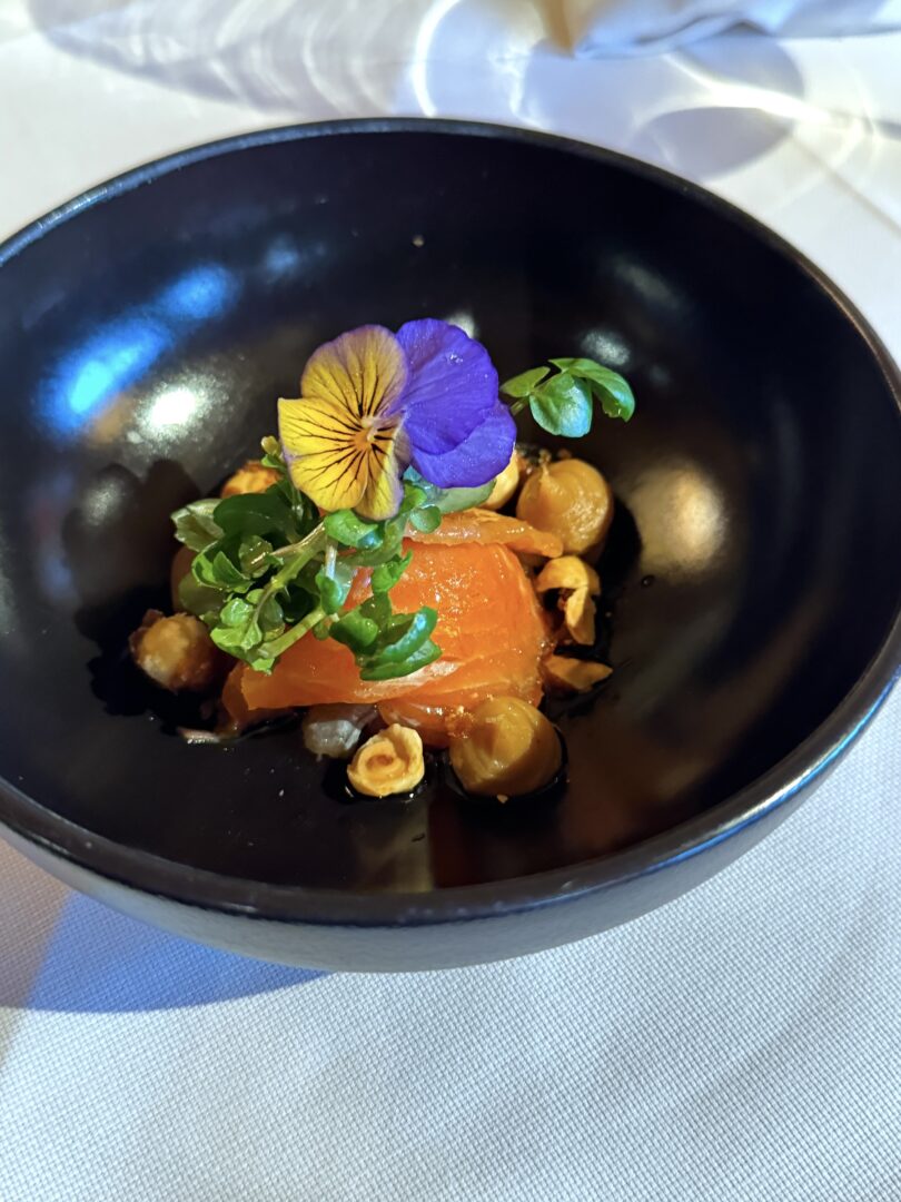 So einen Blick hinter die Kulissen finde ich persönlich ja immer ganz besonders spannend, weil man nur so in die Philosophie der Küche mit allen Sinnen eintauchen kann. Gut gefällt mir, dass Mario Döring viel Wert auf regionale Produkte und umliegende Lieferanten legt. Selbstverständlich werden im Interalpen kurze Lieferwege bevorzugt, auch gibt es einen eigenen Kräutergarten und teilweise zieht es die Küchencrew in den Wald zum Sammeln von jungen Fichtensprossen oder anderen trendigen Delikatessen. Das alles sind Zeichen für echte Leidenschaft am Tun und einer großen Freude am Gastgebersein, die vom Gault Millau 2024 erneut mit vier Hauben belohnt wurden.