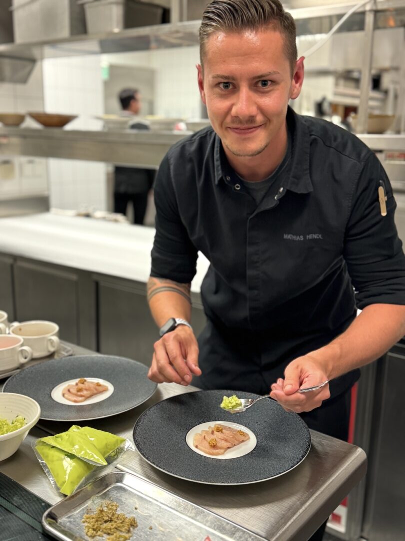 Apropos Kitchenparty: Legendär ist der private Chef’s Table bei Chef de Cuisine Mario Döring und Chef Patissier Michael Hollaus. In der Open Kitchen kann beim wechselnden 8-Gänge-Degustationsmenü den versierten Küchenakrobaten direkt über die Schulter geschaut und dabei über Speisen, Zutaten und Küchenstile philosophiert werden. Dazu kredenzt Chef-Sommelière Theresa Lichtmannegger handverlesene Weine oder alkoholfreie Begleitungen, während Restaurantleiter Gernot Percht äußerst charmant fürs perfekte Ambiente und den besten Service sorgt.
