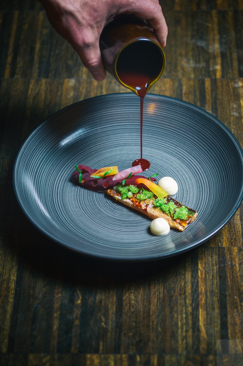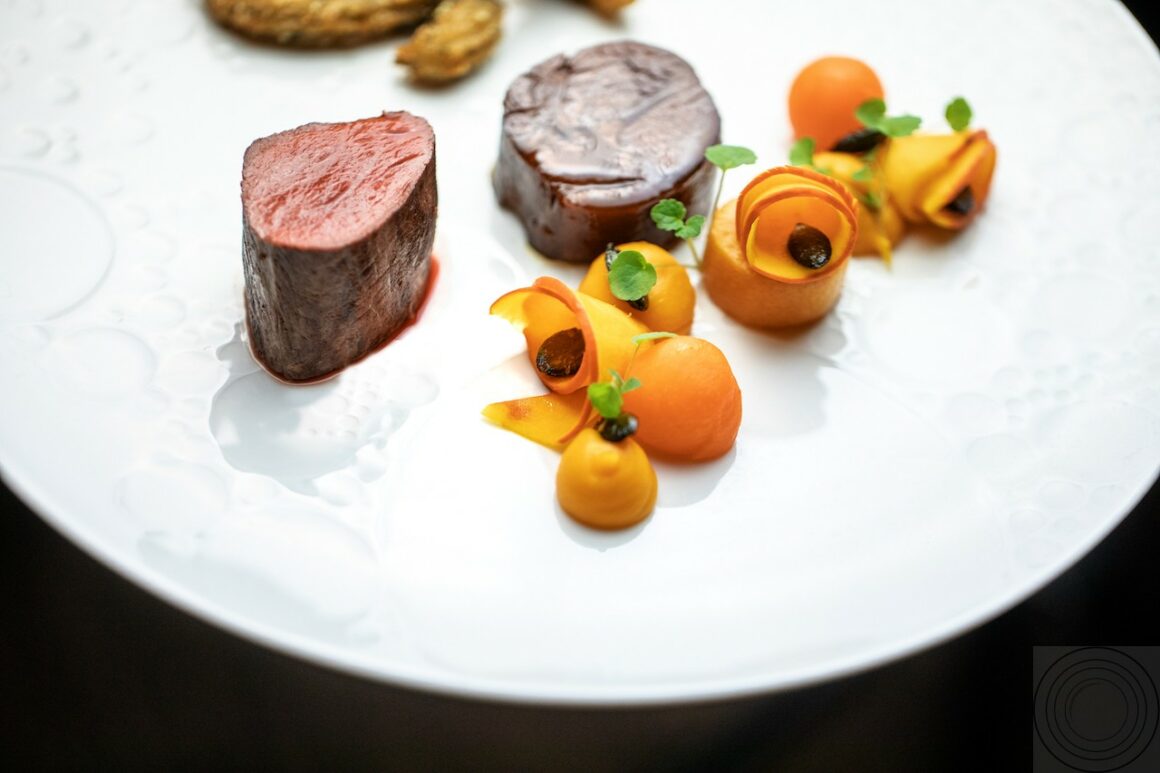 Das Küchen-Konzept erscheint einfach: Man nehme klassische französische Produkte in Top-Qualität wie Austern, Seezunge, Taube, Schnecken und Bries und interpretiere und kombiniere sie auf klare, fast puristische Art und Weise neu wie die Entenleberterrine mit Dörrobsteis, Shiso, Pflaumenwein und Mutzen.