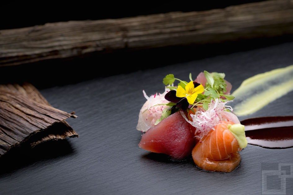 Das „Haus“ findet sich als Schriftzeichen auch im MUN-Logo wieder. Kein Zufall, denn Küchenchef Mun Kim will seine Gäste so bekochen, als wären sie bei ihm Zuhause. Täglich werden zwei vier- und zwei sechsgängige Menüs angeboten, jeweils einmal mit Fleisch, einmal nur mit Fisch. Sushi in bester Qualität ist immer dabei. Wir wählten an unserem Abend zwei unterschiedliche 6-Gänge-Menüs mit der empfohlenen Weinbegleitung. Denn Mun Kim und sein Geschäftspartner Cary Gilbert sind beide große Weinliebhaber.