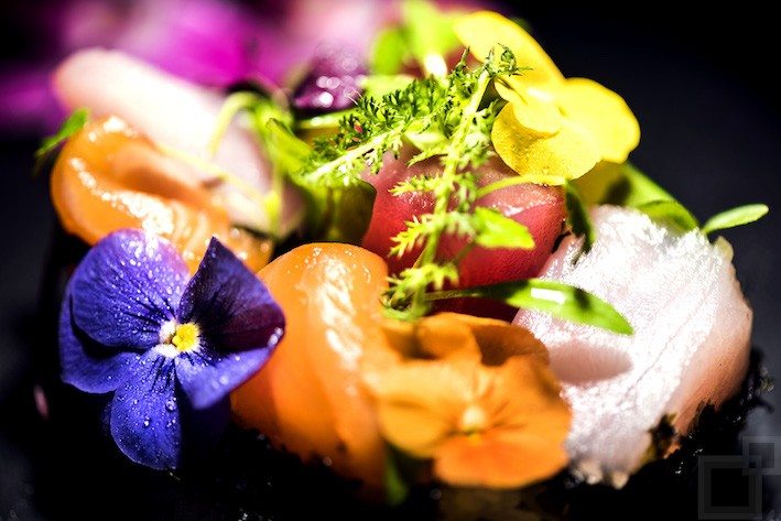 Als Amuse Bouche servierte Mun ein Crispy Rice Bällchen mit spicy Yellow Fin Tuna. Ein Feuerwerk der Aromen und Texturen gleich zu Beginn. Wir waren begeistert! Anschließend das Sushi – Tunfisch, Lachs und Gelbschwanzmakrele – so frisch und delikat, wie wir es in München bisher selten bekommen haben. Gefolgt von einer kleinen Überraschung aus der Küche: Hamachi Sashimi mit Ponzusauce und essbare Blüten. Klare Aromen, perfekt aufeinander abgestimmt. Modern Korean Style.