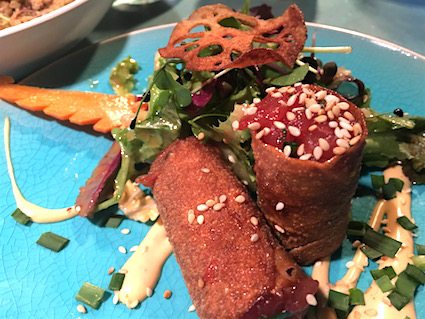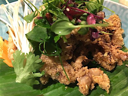 Als nächstes testeten wir: Crispy Tuna Tartare Spring Rolls, leicht und mit frischer Koriander-Note, sowie Pulled Chicken & Lime Spring Rolls, gefolgt von zwei Seafood-Highlights: Salt, Pepper & Chilli Crispy Squid und Golden Fried Softshell Crabs.