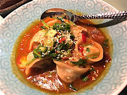 Chinese Dumplings sind Pflicht im Hutong Club. Deshalb bestellten wir Shrimp Crystal Dumplings (klassische Shrimp-Dim Sum) und Spicy Pork & Chives Wan Tan (mit Schweinefleisch gefüllte chinesische „Ravioli“ in einer cremigen, spicy Sauce).