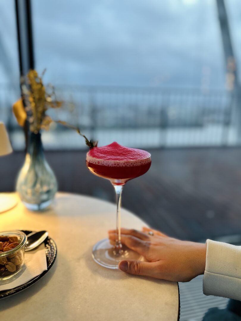 Die Nacht ist noch jung und wir landen nach dem feinen Dinner für ein paar Drinks in der BLICK Bar. Ein Alltime-Favorite muss einfach sein: der Espresso Martini. Damit lassen wir unseren Blick ein weiteres Mal über das Hamburger Hafenpanorama schweifen. Probiert haben wir auch verschiedene Signature-Drinks, wie deb Giocoso, mit Cognac, Zitronensaft, Rosmarin und schwarzer Johannisbeere oder den Beats mit Rum, Orangen Bitter, Dry Curacao und Rote Bete Schaum.