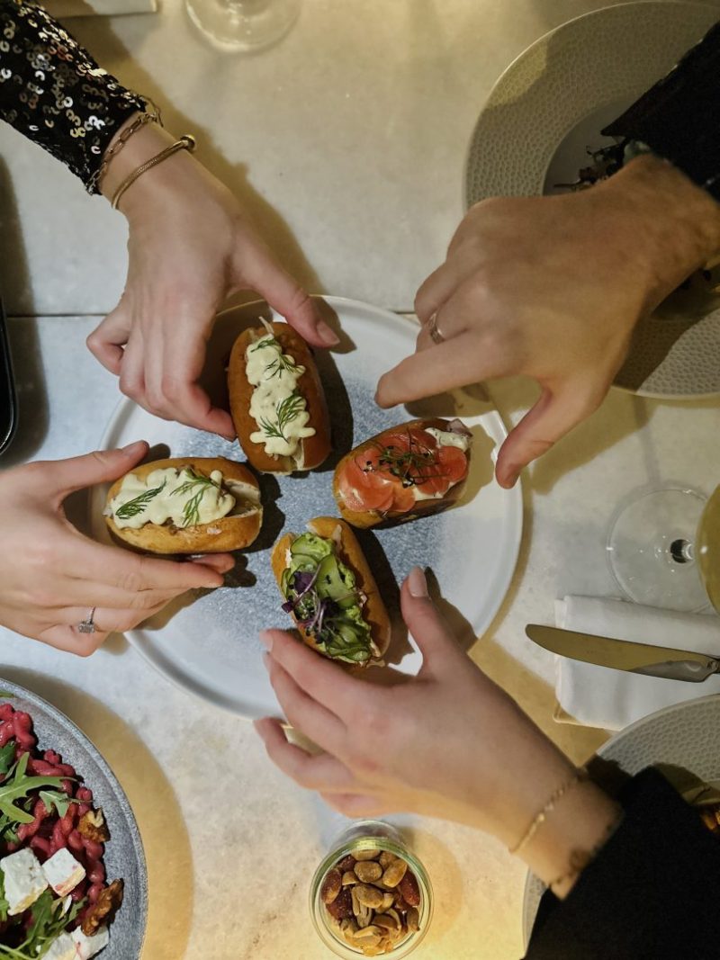 Für den kleinen Hunger werden in der BLICK Bar verschiedene Sharing Dishes angeboten. Wildkräutersalat, Pulpo und unsere Highlights: Brioche Variationen mit Krabben, Lachs und Matjes. Eine kleine Ode an die nicht allzu ferne Nordsee.