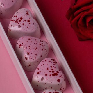 For this year’s Valentine’s Day, the master pastry chef has now created special heart-shaped chocolates: organic white chocolate on a crispy cookie base with strawberry and Greek yoghurt (6 pieces, €13, available at the hotel). Heavenly good!